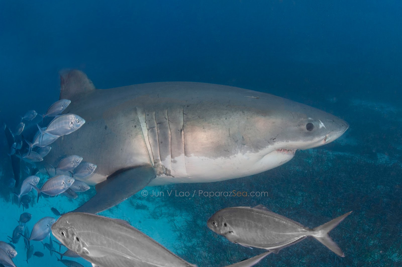 Latest studies share that Great White females can only start having babies by age 33 and pregnancies last a long 11 months. Males on the other hand become sexually active much earlier starting age 26. The weird part here is Females live only till their early 40's (7 year itch comes to mind) while Males... 70 years. No wonder these sharks are on the Vulnerable species list...
